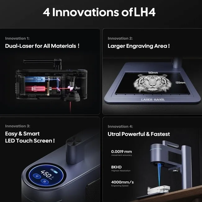 The LaserHawk LH4 is a versatile and powerful tool for those needing precise laser engraving and cutting capabilities. Its robust design and adaptability make it an excellent investment for various industries, ensuring high-quality results every time.