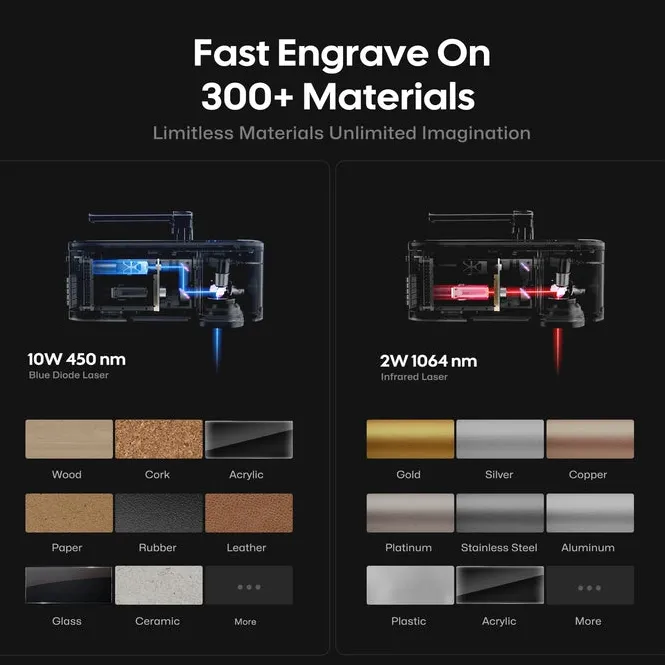 This laser engraver excels in versatility, delivering precise results across wood, acrylic, and leather. Its high-speed performance is impressive for intricate designs on wood and clean cuts on acrylic, while its ability to handle delicate textures on leather stands out. The software interface is user-friendly, with intuitive tools that simplify complex projects. Ideal for both home workshops and small businesses, it’s perfect for custom signage, jewelry boxes, or artistic engravings. A minor suggestion: adding support for thicker materials could enhance its versatility further. Overall, a strong performer with excellent value for hobbyists and professionals alike.