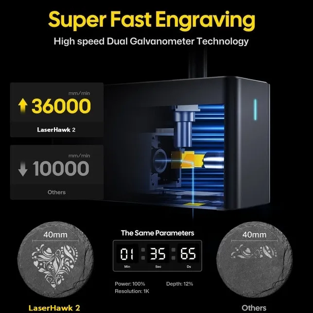 ★★★★★ Exceptional Laser Engraver! The engraving precision is flawless, and the software is user-friendly. Fast speeds boost productivity. Sturdy build ensures reliability. Highly recommend!