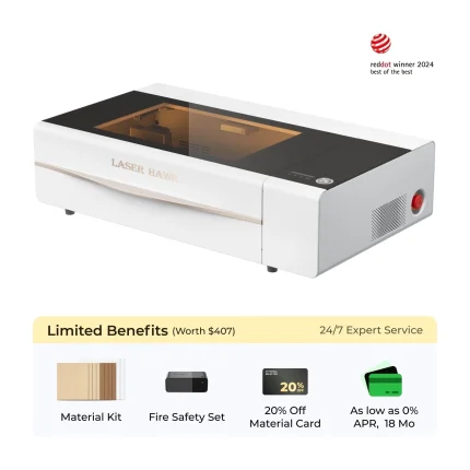 2024 LaserHawk LX1 Series with 120W CO2 laser: Precision wood, metal, & acrylic engraving. Achieve high-speed, high-resolution cuts with industrial-grade performance. Backed by a 3-year warranty. Enhanced durability and reduced material waste for professional users. ISO/CE certified. Worldwide shipping available. Transform your projects with premium quality at an accessible price.