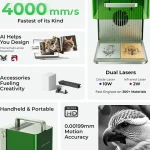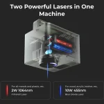 One of the standout features of this laser engraver is its dual-wavelength capability, combining IR (Infrared) and Diode lasers. This allows users to work with a wide variety of materials, ensuring optimal engraving results regardless of the substrate. The IR laser excels in cutting and engraving deeper into materials like wood and acrylic, while the Diode laser provides precision for detailed engravings on metal and other hard surfaces.