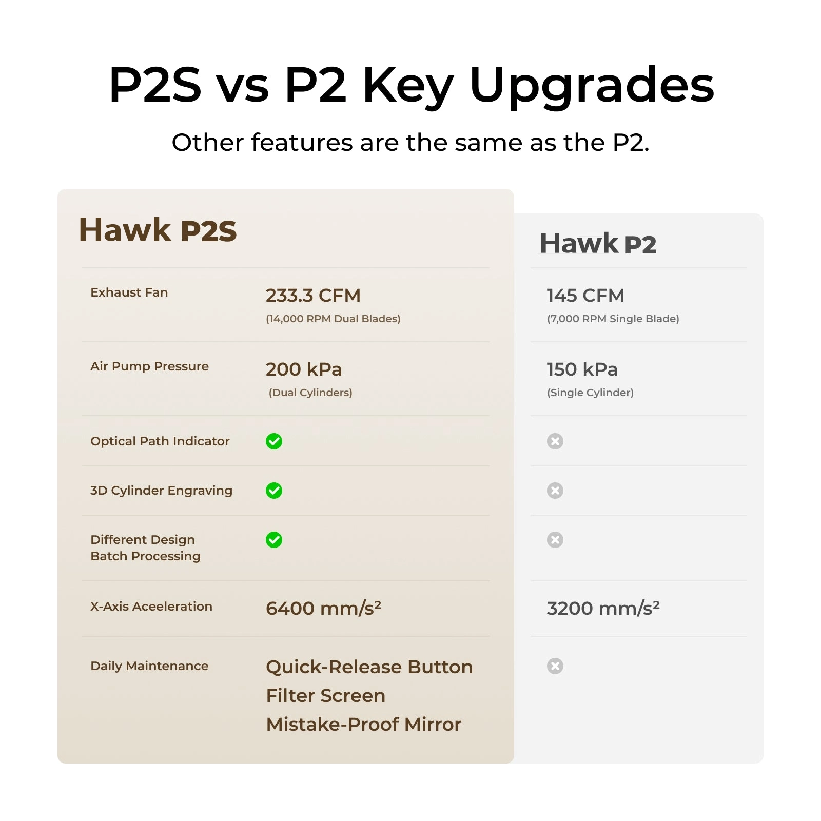 *Compared to the Laser Box, the HAWK P2S has